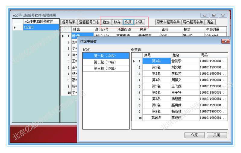 在摇号过程中可作废某轮的某些名额。作废后可马上补缺。