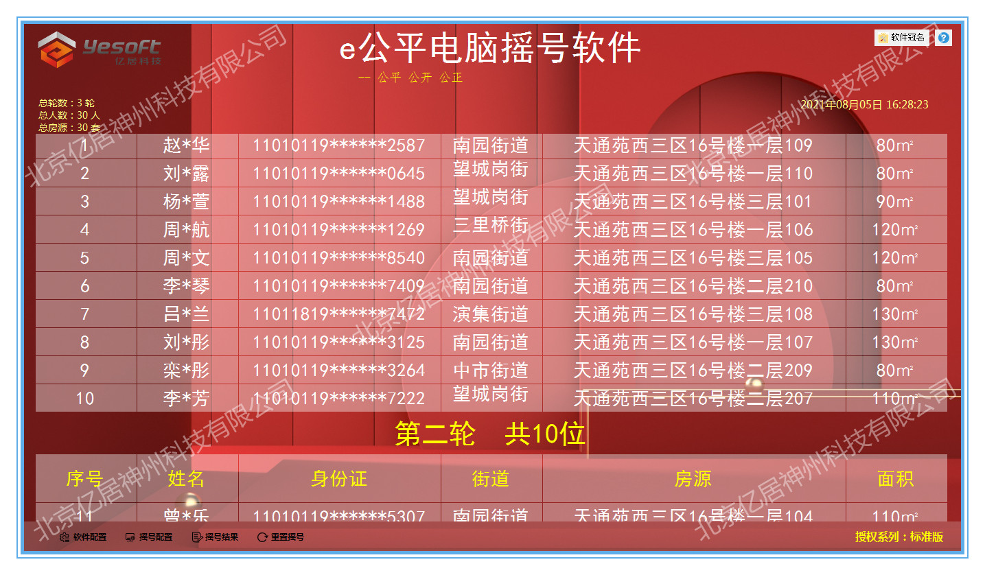 姓名+身份证+街道+房源+面积                                                            摇号结果滚动